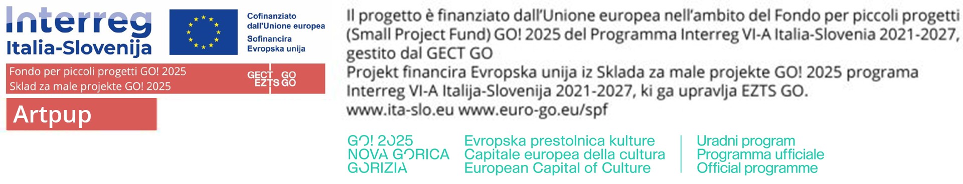 Il progetto ARTPUP è finanziato dall’Unione europea nell’ambito del SPF GO! 2025 del Programma Interreg VI-A Italia-Slovenia 2021-2027, gestito dal GECT GO.