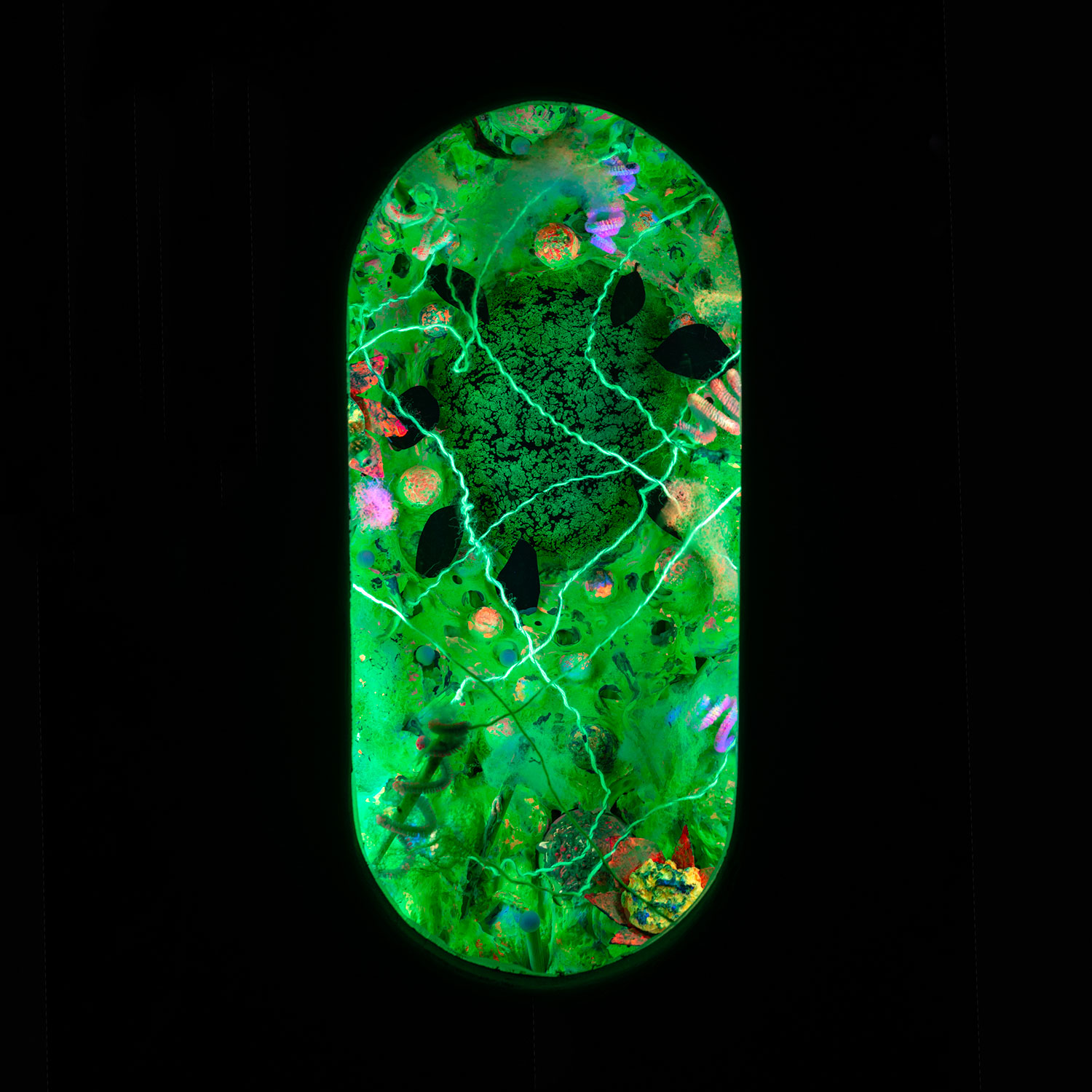 Udeleženci v notranjost kapsule vgradijo UV-luč, ki njihove stvaritve oživi v temi in ustvari iluzijo nezemeljskega življenja ali bioluminiscenčne narave.